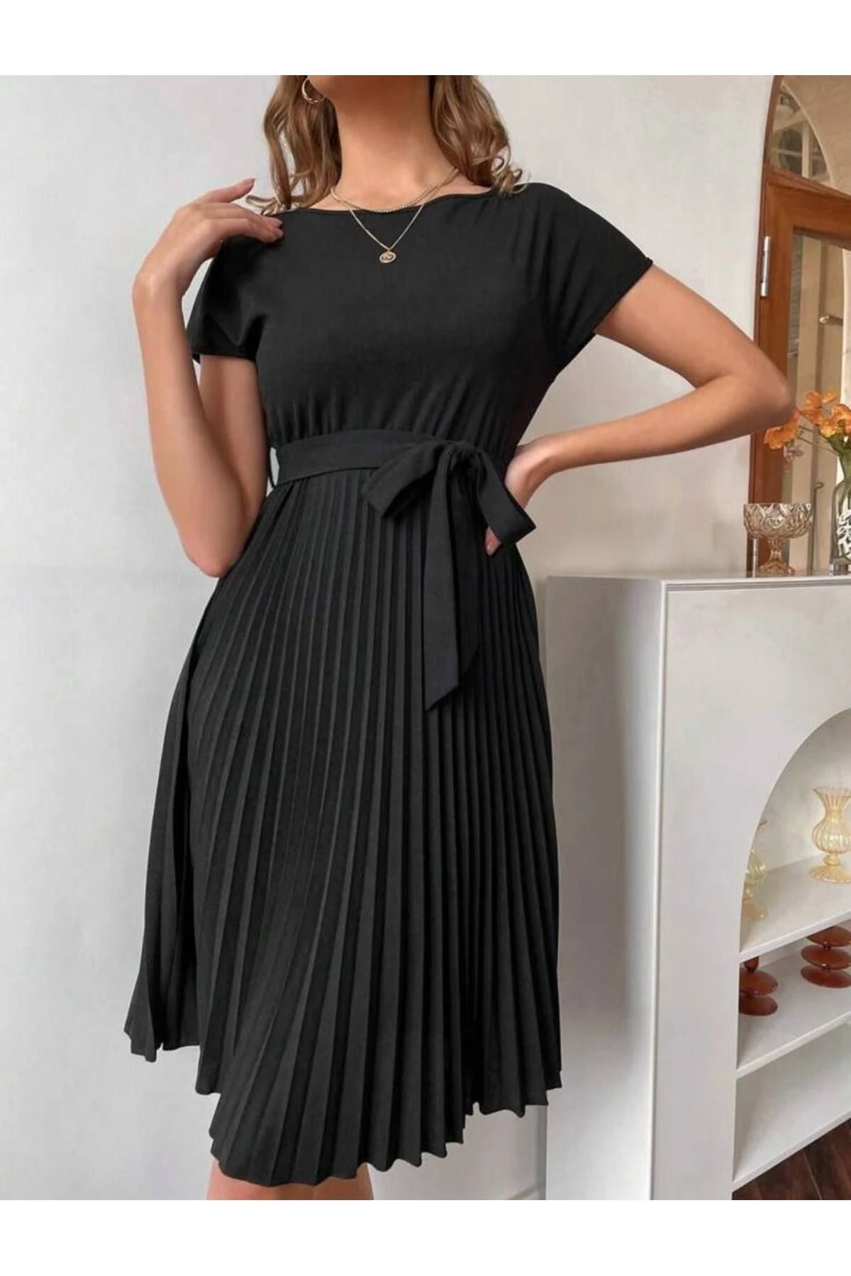 Zarif bir görünüm için tasarlanmış, kemer detayı ile belinizi vurgulayan kısa kollu abiye elbise; Hafif ve nefes alabilen krep kumaşı, gün boyu konforlu bir kullanım sunar; Young koleksiyonunun dinamik ve modern çizgilerini yansıtan şık tasarım; Bisiklet yaka kesimi ile sade ve zarif bir boyun hattı oluşturur; %90 polyester ve %10 likra karışımından oluşan materyal bileşeni, esneklik ve dayanıklılık sağlar; Midi boyu ile hem şık hem de rahat hareket etme özgürlüğü sunar; Uzun kolları sayesinde mevsim geçişlerinde ideal bir tercih olurken, kısa kollarla modern bir hava katılır; Dokuma kumaş tipi, ürünün formunu koruyarak uzun süreli kullanım imkanı tanır; Düz deseniyle sadelikten yana olanların tercihi olacak şekilde tasarlanmıştır; Balon silueti ile feminen hatları ön plana çıkaran zarif bir görünüm sağlar; Beli lastik;