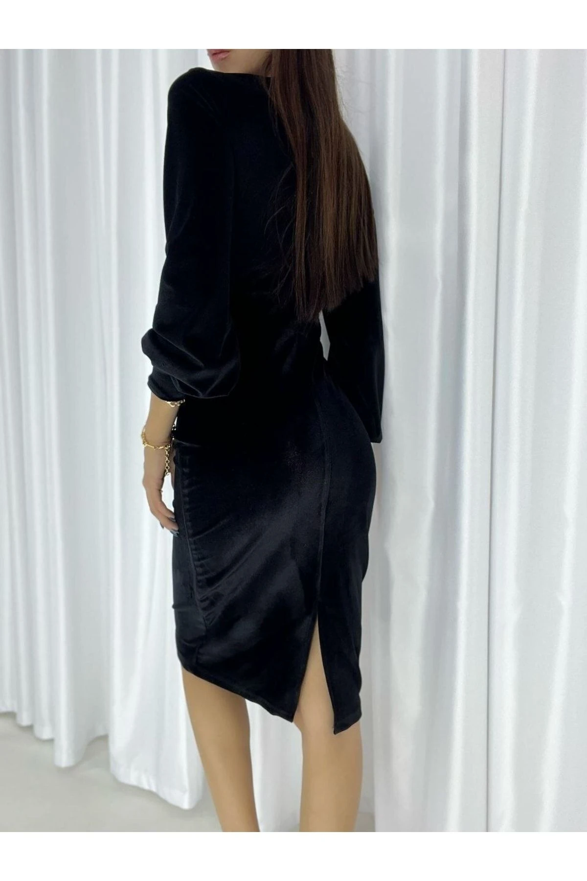 Kruvaze yaka detayı ile modern ve şık bir görünüm sunar; Her yaş grubuna hitap eden tasarımıyla geniş bir kullanıcı yelpazesine sahiptir; Yırtmaçlı tasarımı sayesinde hareket özgürlüğü sağlar ve feminen bir siluet oluşturur; Uzun kollu yapısı ile mevsim geçişlerinde de rahatlıkla tercih edilebilir; Şık ve gece ortamları için idealdir; zarifliği ve konforu bir arada sunar; Kadife materyali, lüks dokusuyla göz alıcı bir parlaklık kazandırır; Regular kalıp, rahat bir kullanım sağlarken vücut hatlarını nazikçe sarar; Midi boyu ile hem günlük kullanım hem de özel davetler için uygundur; Düz deseni ve dokuma tipi, sade ama etkileyici bir görünüm yaratır;